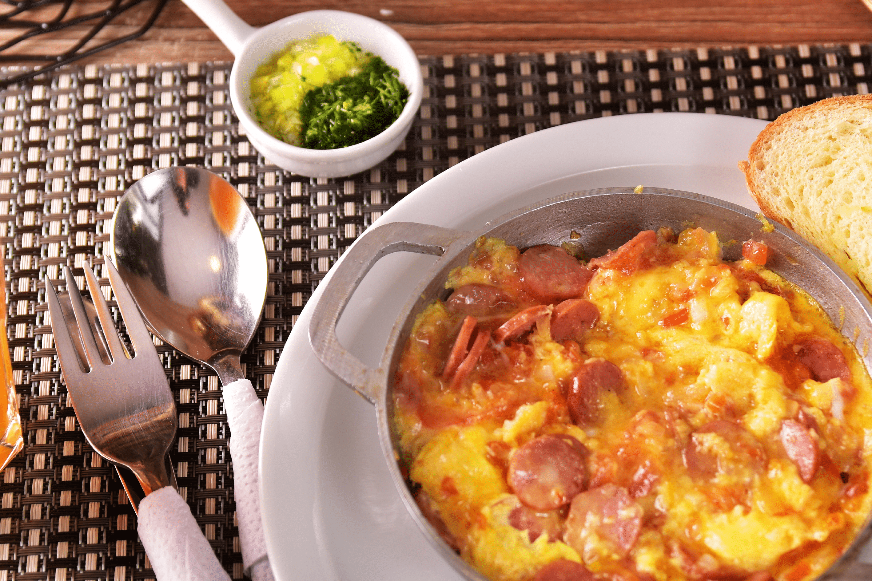 SALCHICHAS RANCHERA MEZCLADAS CON HUEVOS DE LA FINCA